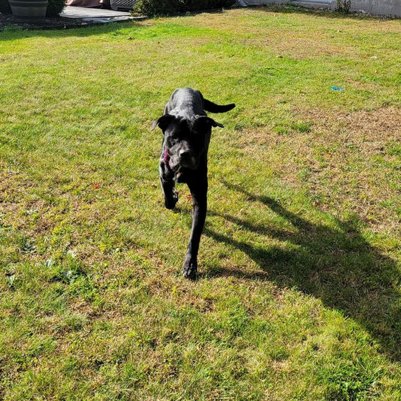 Panda has been busy enjoying good food, cuddles on the couch, and has been quickly picking up all the basics of cushy home living. She was extremely thin but has been safely, steadily gaining weight with good nutrition. She understands some basic cues, walks well on a leash, enjoys car rides, and is attentive and responsive to the lovely humans she's fostering with. You'd never know she had a sad start from her super friendly demeanor, she loves meeting new people– or friends– she hasn't met a stranger! She always enjoys getting positive attention and showing off what a sweetie she is. Panda loves giving kisses but is always gentle and has been a kind little helper at the elder care facility her foster works at. She was also a special greeter at the facility when a Girl Scout troop visited (so many pats to be had that day!). She's been enjoying a mellow life and would be happy to soak up the love as an only-dog or with another easy-going or older dog (mellow), and she is good with kiddos. Her days have been filled with friends, snuggles, a good chew toy, and getting to watch the pretty leaves blow by - such simple things are plenty enough when you have love! She would be so grateful and appreciative for a loving family she can cuddle up and share mutual adoration with ❤️